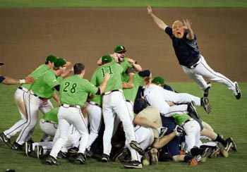 landing on top of the pile. Pitchers and catchers sprinted in
