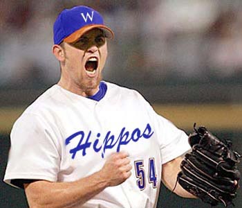 ![]() Wapakoneta's Brad Lidge celebrates the Hippos' victory over the Black Sox in the ELDS. |