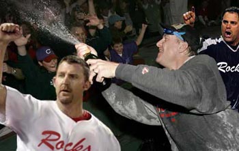 ![]() Cleveland Rocks Jim Thome, Curt Schilling and Kenny Rogers celebrate their division title. |